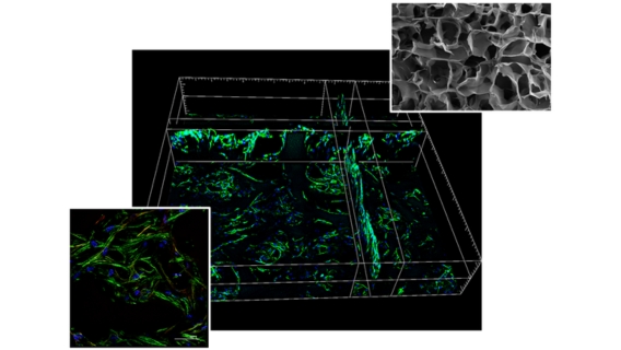 To deliver FRCs in a physiologically relevant environment, the team engineered 3D macroporous gelatin scaffolds with customizable pore sizes. These scaffolds supported FRC survival in vitro and, compared to conventional 2D culture, enhanced FRC phenotypic marker expression (gp38, PDGFRa), extracellular matrix deposition (collagen and laminin a-4) and anti-inflammatory cytokine secretion (TGF-b2).